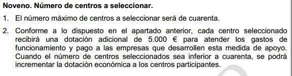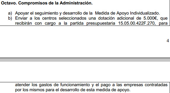 Sin embargo, nos encontramos con una propuesta en la que el consejero Pedro A. Sánchez ofrece la cantidad de 5.000 euros a los IES que se acojan a dicho plan, cuando se les debe dinero a los centros educativos desde el año 2011, conociendo la lamentable situación de penuria económica que están padeciendo los centros públicos y que se ha denunciado recientemente en los medios de comunicación, donde apenas si se alcanza para pagar luz y agua, en una situación vergonzosa y provocada conscientemente por nuestros gobernantes.