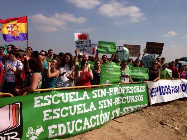 La comunidad educativa al completo, con una importante representación de profesores interinos, ha expresado el profundo malestar con unas políticas educativas que ponen en peligro a la Escuela Pública a través de los recortes en becas, despidos de profesores, hacinamiento de alumnos, centros educativos sin recursos, o profesores impartiendo materias que no les corresponden, destruyendo la igualdad de oportunidades y mermando la calidad del sistema educativo.